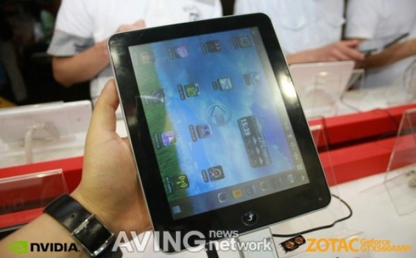 C'est au détour d'une allée du Computex, dans un stand, qu'était exposé cette tablette, aux douces ressemblances avec l'iPad d'Apple. Cet iPad... pardon ce clone est assemblé par Jung Shin Technologie, ne porte pas encore de nom, est équipé du WIFI, de la 3G, et même de dos... on dirait un iPad Pas mal hein ?