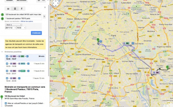 Google Transit - Se déplacer en Métro et RER - 28/11/2012