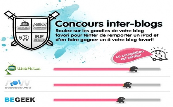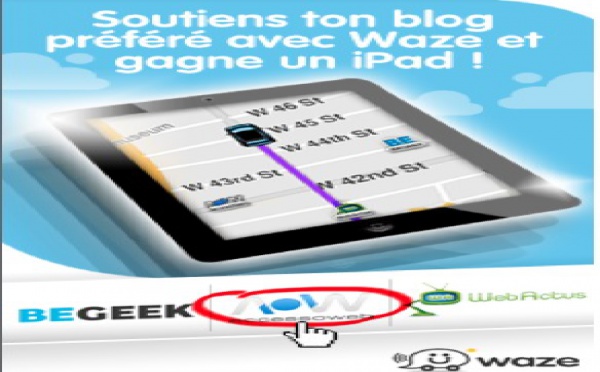 Comme vous le savez surement déjà si vous lisez AccessOWeb, du 25 avril au 2 mai 2011, Waze organise un concours pour gagner un iPad 2 avec 3 blogs français. Le concours démarrera aujourd'hui à 12h, et ceci pour 1 semaine complète, les gagnants seront connus Mardi 3 Mai 2011. Un point important sur le réglement. Si vous voulez...