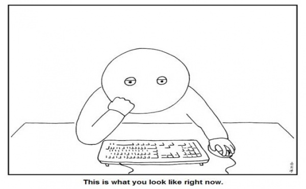 Voilà à peu près la position que j'avais lorsque j'ai vu cette image sur le JdG. En gros, ma position sur le bureau qui se reflétait sur mon écran. Et vous ?