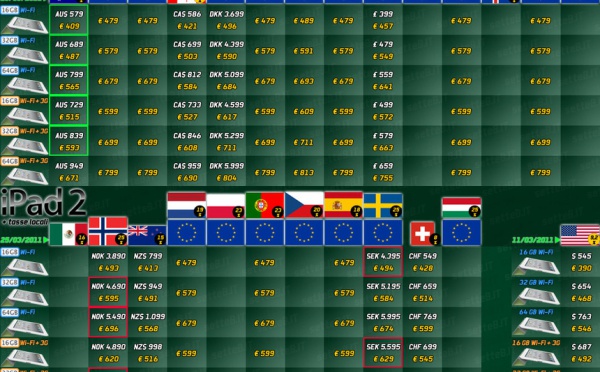 iPad 2 - Les prix en Europe et ailleurs - 25/03/2011