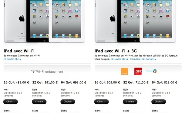 Et c'est parti, l'iPad 2 est désormais en vente sur Apple.fr aux prix indiqués il y a quelques jours. Vous pouvez donc passer commande de l'iPad 2 mais les délais de livraison sont, pour l'instant, estimé à 2 ou 3 semaines. Pour rappel, l'iPad 2 devrait être mis en vente aujourd'hui 25 mars 2011 à partir de 17h seulement dans...