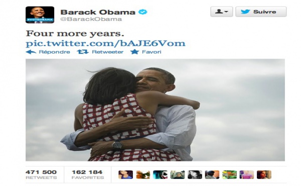 471500 retweet, à l'heure ou j'écris ces quelques lignes, voilà un chiffre qui pourrait en faire rêver plus d'un. C'est le tweet envoyé par Barack Obama à tous ses abonnés qui a été retweeté en masse après que les USA aient découvert le visage de celui qui prendra la tête du pays pour 4 ans de plus. Ce tweet devient par le...