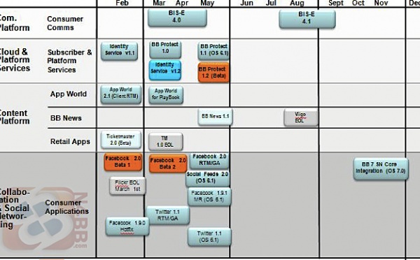 Le site n4bb.com prétend avoir en sa possession la roadmap de RIM pour le futur de la marque concernant les BlackBerry.Comme on peut le voir sur cette feuille de route, RIM prévoit de mettre à jour son application Facebook avec plusieurs versions d'évaluation avant de lancer la version finale pour le mois de mai.Nous...