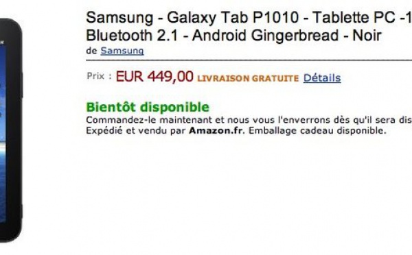 Samsung Galaxy Tab WIFI à 449 € en pré-commande sur Amazon - 09/03/2011