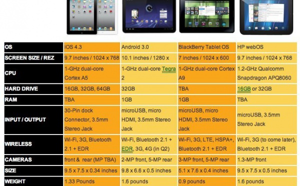 iPad 2 vs Xoom vs Playbook vs Touchpad - 02/03/2011