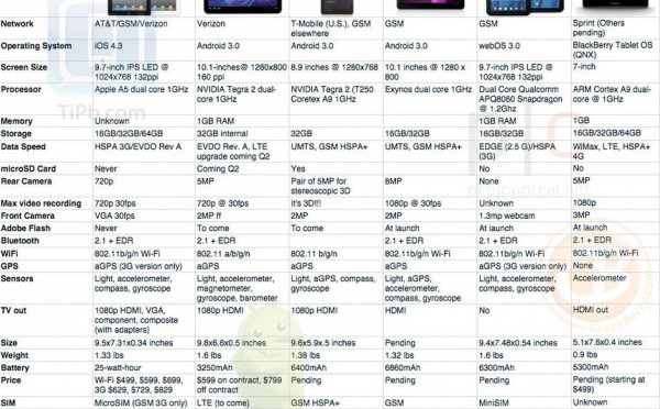 iPad 2 vs Xoom vs Optimus Pad vs Galaxy Tab10 vs Touchpad vs Playbook - 03/03/2011