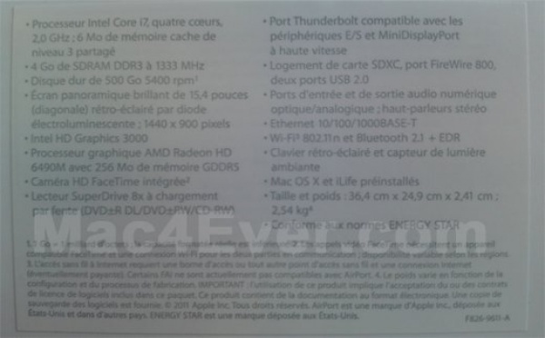 Les caractéristiques techniques du nouveau MacBook Pro 15" - 24/02/2011