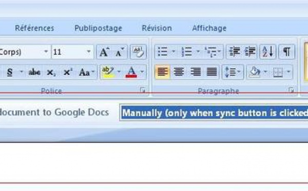 Google a mis à disposition Google Cloud Connect, que vous pouvez télécharger gratuitement, sous Windows uniquement, et qui permet de synchroniser, partager, etc... des documents Microsoft Office en ligne ... On the Cloud.Vous allez me dire que Google Documents fait la même chose, surtout depuis que les nouveaux formats sont...