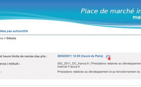 Un nouveau marché public est apparu pour le site France.fr avec pour objet, je cite : " Prestations relatives au développement et au fonctionnement du site internet France.fr "D'après un Tweet de Fred Montagnon, le budget estimé serait de 2 Millions d'Euros ( c'est une plaisanterie non ? )Mais bon, si vous avec une...