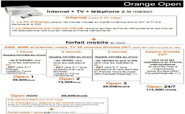Alors que pratiquement tous les FAI ont suivis Free avec les appels vers les mobiles inclus dans le forfait internet, Orange vient d'annoncer officiellement l'intégration de l'option dans quatre de ses forfaits quadruple-play intitulé Open qui sont accessibles à partir de 59.90€/mois et disponible à partir du 1er février avec...