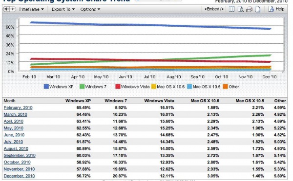 Windows 7 - Les 20 % de parts de marché sont atteintes - 04/01/2011