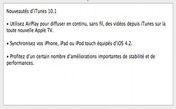 Téléchargez iTunes 10.1 mais pas iOS 4.2 - 13/11/2010