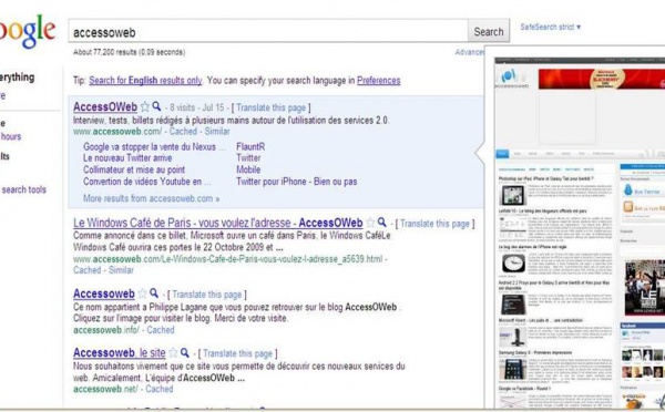 Google Instant Preview - Affichez l'aperçu d'un site web - 10/11/2010