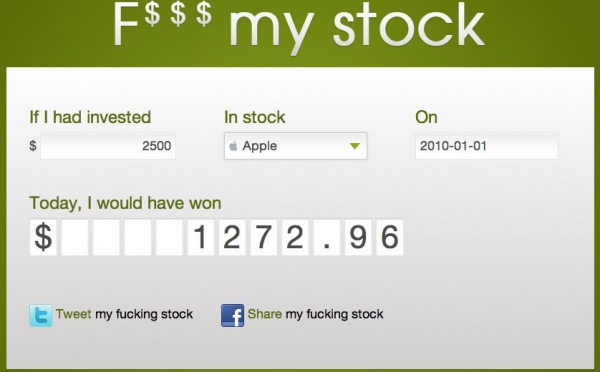 Voilà une petite application en ligne qui vous permet de savoir combien vous auriez gagné ... ou perdu, en investissant de l'argent dans quelques actions de grands noms du Web ou du Mobile.Evidemment, dans F$$$ My Stock, le mode de calcul est un peu rapide, les frais ne sont pas comptabilisés, mais cet outil donne un...