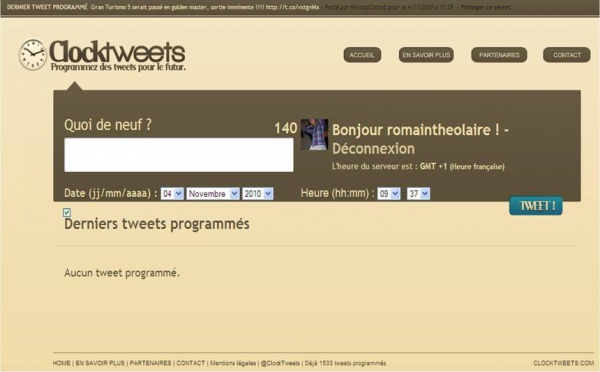 Programmez vos tweets à l'avance avec Clocktweets - 04/11/2010