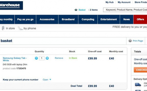 La tablette Samsung Galaxy Tab est en vente aujourd'hui chez The Carphone Warehouse, au UK.Le prix proposé est de 100 £ à condition de prendre un forfait 3G de 40 £/mois pendant 2 ans sachant que ce forfait offre 5 GB/moisOn sait que la Samsung Galaxy Tab va sortir en France d'ici peu de temps, elle est attendu pour ce...