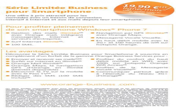 Orange Business dévoile ses forfaits "Série Limitée Business pour Smartphone" - 15/10/2010