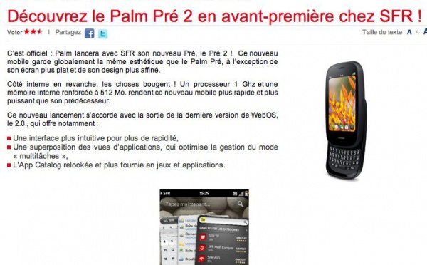 Le Palm Pre 2 en première mondiale chez SFR? - 11/10/2010