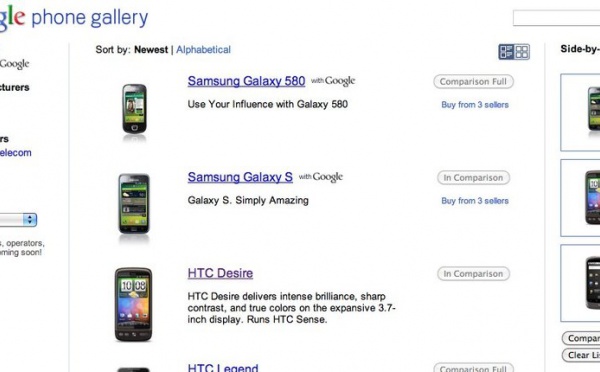 Google Phone Gallery - Comparateur de mobiles Android en ligne - 30/09/2010