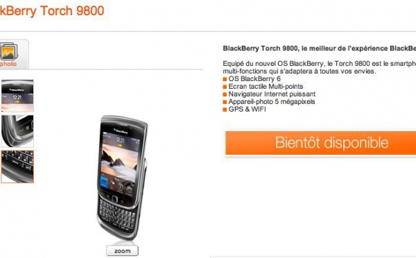 Le Blackberry Torch chez Orange dès le 4 Octobre - 30/09/2010