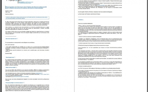 Hadopi - Le contenu de la lettre d'avertissement - 28/09/2010