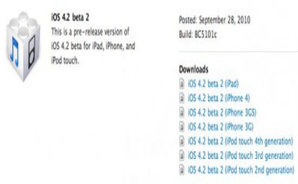 La bêta 2 de l'iOS 4.2 est disponible - 29/09/2010