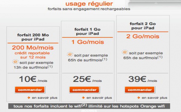 Orange vient de sortir un nouveau forfait pour l'iPad 3G au prix de 25 €/mois pour une consommation de 1 Go.Si ce forfait intermédiaire est surement le bienvenu pour les clients, il y a un truc étrange que j'ai du mal à comprendre.En lisant l'image ci dessus, trouvée sur le site d'Orange, on peut lire que : le forfait à...