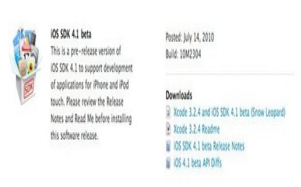 iPhone iOS 4.1 à disposition des développeurs - 15/07/2010
