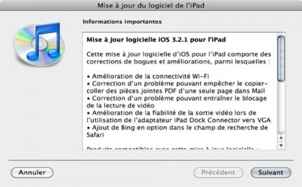 Téléchargez iOS 3.2.1 pour iPad - 15/07/2010