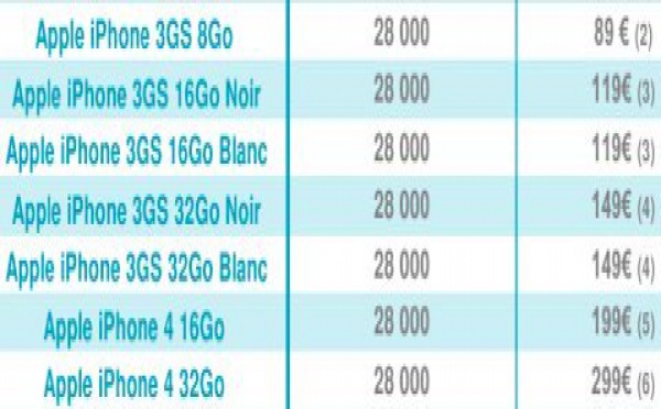 Après l'annonce des tarifs chez Orange, Bouygues Telecom met en avant un peu à la manière d'Orange les "bons" clients avec un iPhone 4 16 Go à 199€ et le modèle 32 Go à 299€. Mais pour prétendre à un tel tarif, vous devrez avoir cumulé 28 000 points ce qui est vraiment réservé aux clients très fidèles.