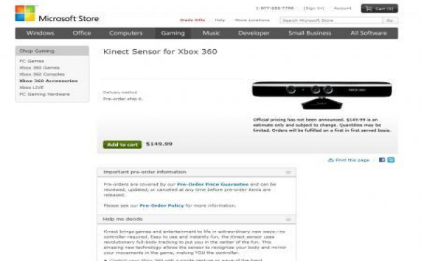 Le Microsoft Kinect est en précommande à 149,99$ - 23/06/2010