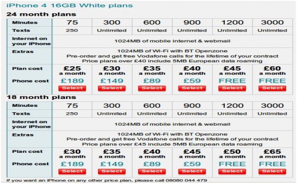 Prix de l'iPhone 4 chez Vodafone UK - 14/06/2010