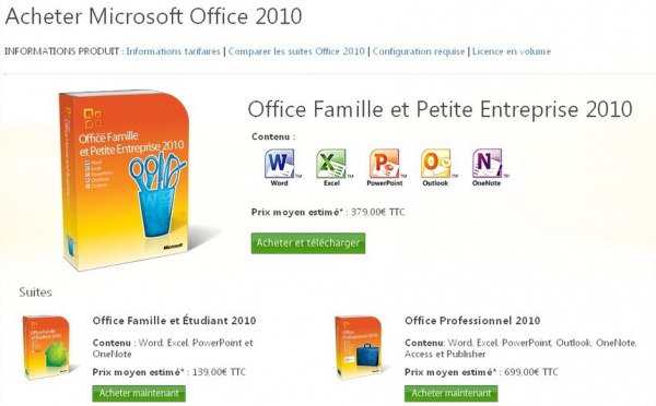 L'annonce avait commencé à apparaître hier, et aujourd'hui, Microsoft Office 2010 est officiellement en vente dans toutes les bonnes crèmeries ( Fnac, etc ... ) ainsi qu'en ligne sur Office Les prix oscillent entre 139 € pour le pack famille ou étudiant et 699 € pour Office Professionnel.Le nombre de licences Microsoft Office...