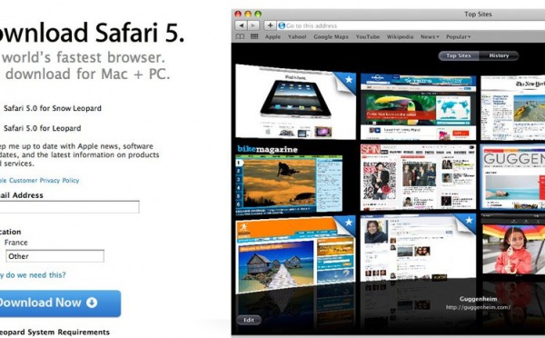 On pensait que Steve Jobs se ferait un plaisir d'annoncer Safari 5 pendant la Keynote, et bien non, il n'en a pas dit mot.Mais, Safari 5 est bel et bien disponible pour tous depuis aujourd'hui. ( Mac et PC )Du côté des nouveautés, on notera : une rapidité accrue ( on parle de 30% ) une meilleure gestion du cache l'arrivée...