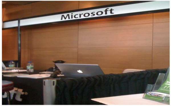 La photo est belle et bien réelle, cela se passe sur le stand Microsoft au WebComMT de Montréal.Même si Windows fonctionne sous Mac, vu que l'on vient de voir que Apple vaut maintenant plus cher que Microsoft, cette photo n'est peut être pas la bienvenue ... à moins que Microsoft ai décidé de changer tout son parc informatique...