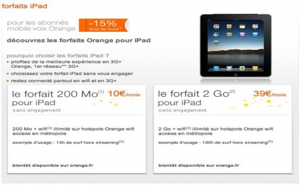 Les forfaits Orange pour l'iPad 3G - 07/05/2010