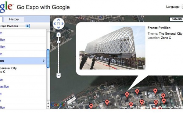 Vous souhaitez vous rendre à l'Exposition Universelle en Chine mais vous souhaitez faire un premier repérage avant de partir ?Google vous propose ce site " Go Expo with Google " qui vous permettra de visionner l'emplacement de tous les pavillons. Ces derniers sont classés par catégories
