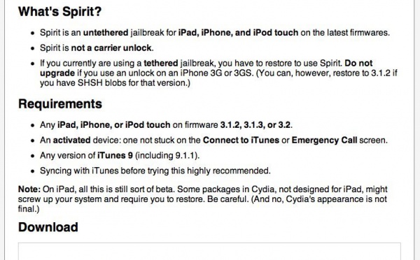 Spirit Jailbreak est disponible - 03/05/2010