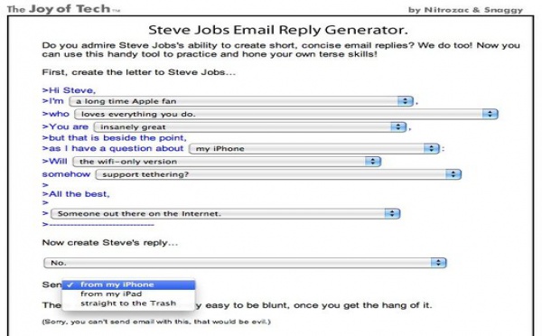 Le Steve Jobs Email Reply Generator - 29/04/2010
