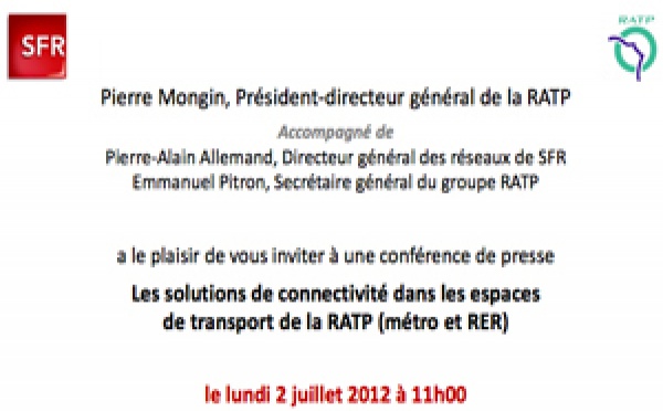 Après la réponse à l'appel d'offres de Gowex à la RATP pour une partie des stations du métro parisien, SFR convie la presse pour le lundi 2 juillet à 11h00. SFR devrait annoncer aux medias, la couverture totale ou partielle de la 3G pour les usagers du métro et RER avec une annonce baptisée "Solutions de connectivité dans les...