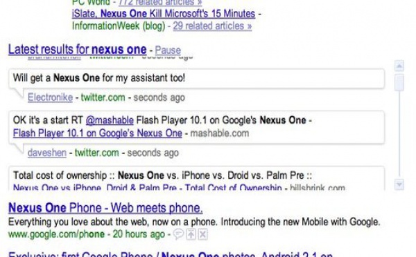 Résultats de recherche en temps réel sur Google - impressionnant - 06/01/2010