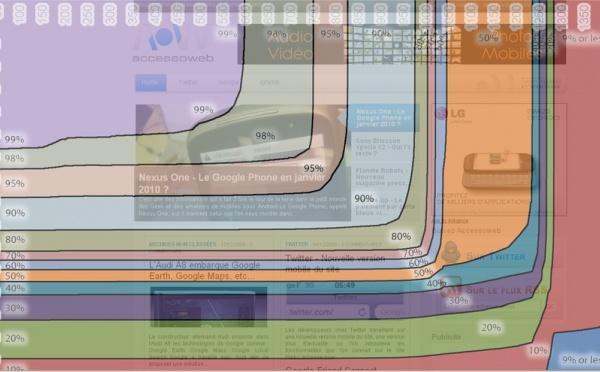 Voici la page d'accueil d'AccessOWeb vu par Google Browser Size qui est censé représenter la vision des visiteurs en arrivant sur votre site.Et voici maintenant une page de billet.ça peut aider à comprendre certaines choses pour l'emplacement des publicités :)