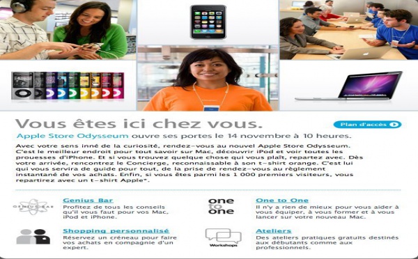 Voilà ce que j'ai reçu aujourd'hui sur mon Gmail.L'annonce de l'ouverture de l'Apple Store de Montpellier à l'Odysseum.Comme pour l'Apple Store de Paris, des tee-shirt collectors seront offerts aux premiers clients, mais seulement aux 1000 premiers.Qui sera à L'Odysseum de Montpellier pour l'ouverture de l'Apple Store ?