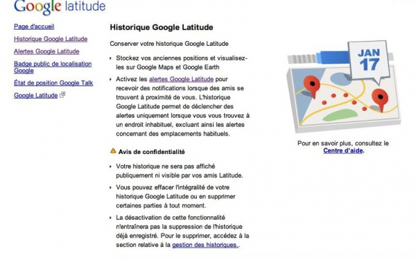 2 nouvelles fonctionnalités viennent d'être mise en place dans Google Latitude.La première, ( image ci dessus ) c'est l'Historique Google Latitude.Historique Google Latitude, comme son nom l'indique, va vous permettre de voir vos différentes positions sur Google Maps et Google Earth. On parle là des anciennes positions.Du coup,...