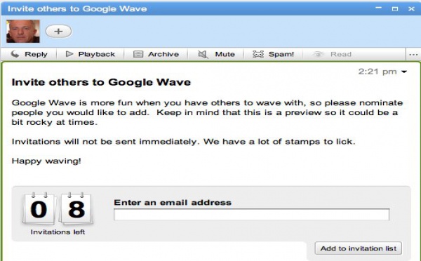 8 invitations pour Google Wave - 11/11/2009