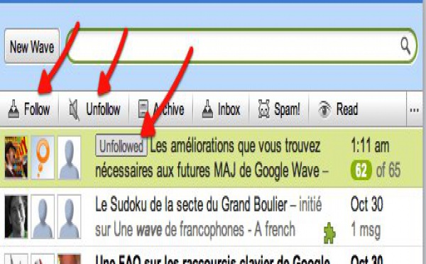 Google Wave - Follow et Unfollow entre en action - 13/11/2009