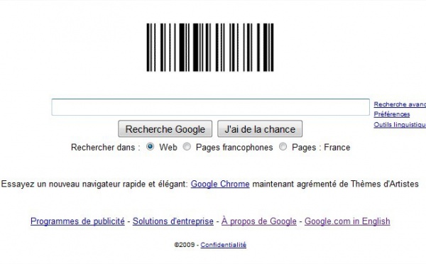 C'est la fête du code barre chez Google aujourd'hui ! - 07/10/2009