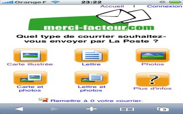 Vous connaissez sans doute le site Merci Facteur qui permet d'envoyer du courrier à une personne sans quitter son ordinateur ( je parle bien sur de courrier papier, de cartes de voeux, etc ... )Et bien Merci Facteur existe aussi en version mobile, et est accessible à l'adresse m.merci-facteur.com...