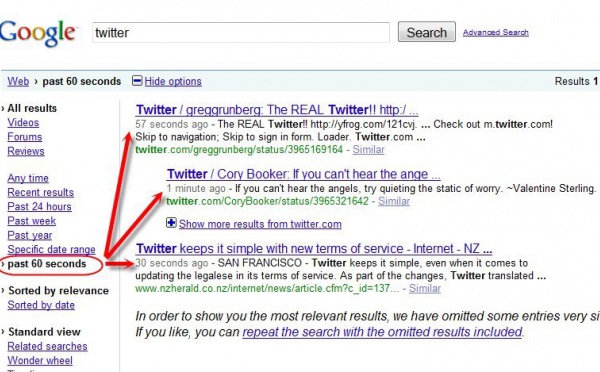 Résultats de recherche en temps réel sur Google - 14/09/2009